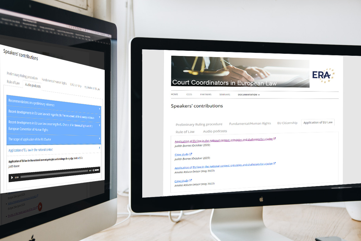 Audio podcasts, speakers’ contributions and case studies on the „Application of EU law“ can be found on the project subsite Court Coordinators in European Law.